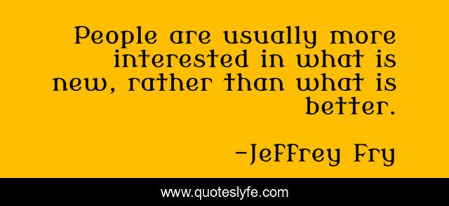 This page presents the quote "People are usually more interested in what is new, rather than what is better.". Author of this quote is Jeffrey Fry. This quote is about what-is-new, rather, people, usually, interested, what-is-better, more,.
