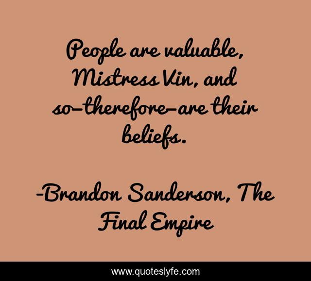 "Brandon Sanderson, The Final Empire Quotes." Quoteslyfe.com, 2025. Sat. 06 Dec. 2025. <https://www.quoteslyfe.com/quote/People-are-valuable-Mistress-Vin-and-so-111190>.