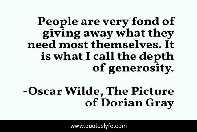 This page presents the quote "People are very fond of giving away what they need most themselves. It is what I call the depth of generosity.". Author of this quote is Oscar Wilde, The Picture of Dorian Gray. .