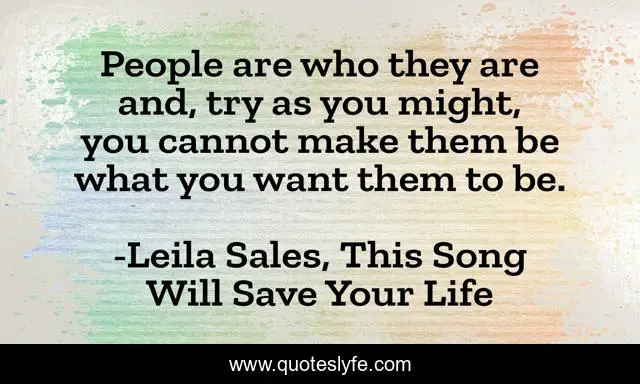 This page presents the quote "People are who they are and, try as you might, you cannot make them be what you want them to be.". Author of this quote is Leila Sales, This Song Will Save Your Life. This quote is about who-you-are, change, people,.