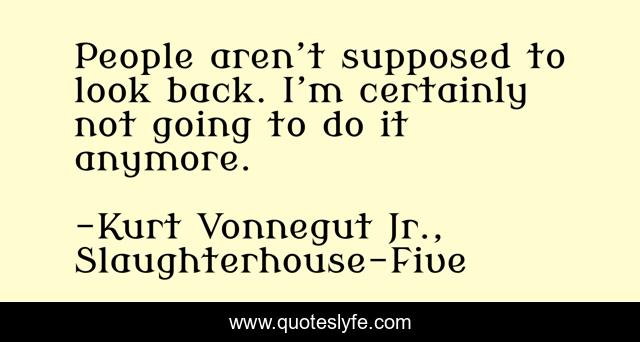 "Kurt Vonnegut Jr., Slaughterhouse-Five Quotes." Quoteslyfe.com, 2025. Tue. 09 Dec. 2025. <https://www.quoteslyfe.com/quote/People-aren-t-supposed-to-look-back-111737>.