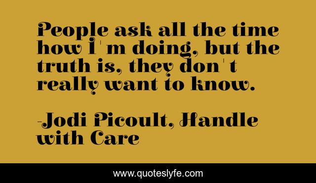 This page presents the quote "People ask all the time how I'm doing, but the truth is, they don't really want to know.". Author of this quote is Jodi Picoult, Handle with Care. .