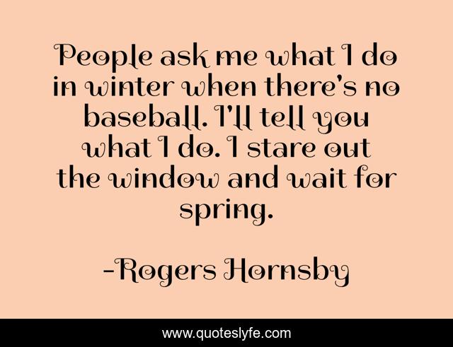 This page presents the quote "People ask me what I do in winter when there's no baseball. I'll tell you what I do. I stare out the window and wait for spring.". Author of this quote is Rogers Hornsby. This quote is about spring, baseball, winter,.