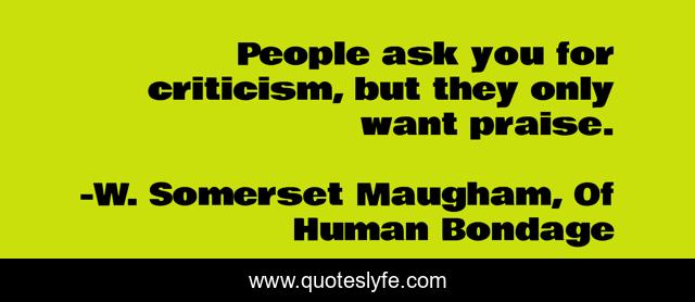 "W. Somerset Maugham, Of Human Bondage Quotes." Quoteslyfe.com, 2025. Sat. 06 Dec. 2025. <https://www.quoteslyfe.com/quote/People-ask-you-for-criticism-but-they-226003>.