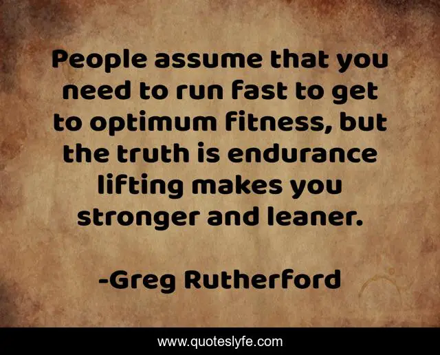 This page presents the quote "People assume that you need to run fast to get to optimum fitness, but the truth is endurance lifting makes you stronger and leaner.". Author of this quote is Greg Rutherford. This quote is about stronger, truth, people,.