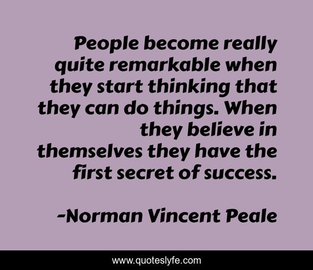 This page presents the quote "People become really quite remarkable when they start thinking that they can do things. When they believe in themselves they have the first secret of success.". Author of this quote is Norman Vincent Peale. .