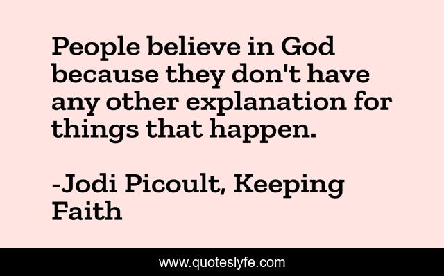 This page presents the quote "People believe in God because they don't have any other explanation for things that happen.". Author of this quote is Jodi Picoult, Keeping Faith. This quote is about god, beliefs, religion,.