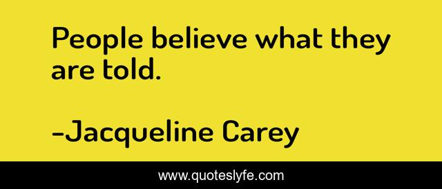 "Jacqueline Carey Quotes." Quoteslyfe.com, 2025. Mon. 08 Dec. 2025. <https://www.quoteslyfe.com/quote/People-believe-what-they-are-told-56883>.