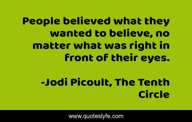 This page presents the quote "People believed what they wanted to believe, no matter what was right in front of their eyes.". Author of this quote is Jodi Picoult, The Tenth Circle. This quote is about jodi-picoult, the-tenth-circle, belief,.