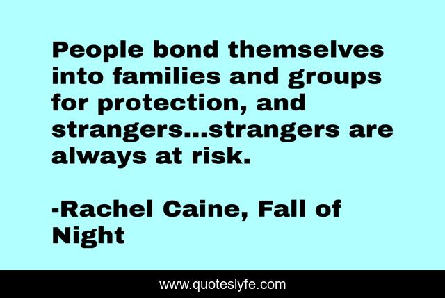 This page presents the quote "People bond themselves into families and groups for protection, and strangers...strangers are always at risk.". Author of this quote is Rachel Caine, Fall of Night. This quote is about morganville-vampires, myrnin, danger,.