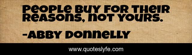 This page presents the quote "People buy for their reasons, not yours.". Author of this quote is Abby Donnelly. This quote is about marketing, motivation, sales,.
