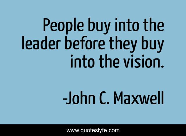 This page presents the quote "People buy into the leader before they buy into the vision.". Author of this quote is John C. Maxwell. This quote is about leader, vision, people,.