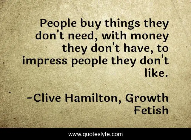 "Clive Hamilton, Growth Fetish Quotes." Quoteslyfe.com, 2025. Fri. 05 Dec. 2025. <https://www.quoteslyfe.com/quote/People-buy-things-they-don-t-need-204902>.