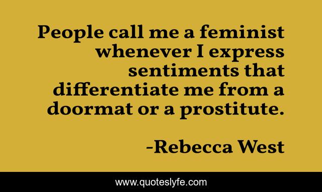 This page presents the quote "People call me a feminist whenever I express sentiments that differentiate me from a doormat or a prostitute.". Author of this quote is Rebecca West. .