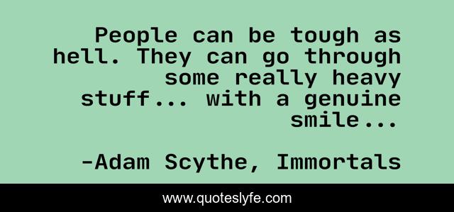 This page presents the quote "People can be tough as hell. They can go through some really heavy stuff... with a genuine smile...". Author of this quote is Adam Scythe, Immortals. This quote is about smile, optimism, happiness, positive-thinking,.