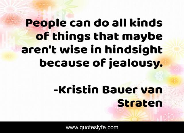 This page presents the quote "People can do all kinds of things that maybe aren't wise in hindsight because of jealousy.". Author of this quote is Kristin Bauer van Straten. This quote is about people, wise, hindsight,.