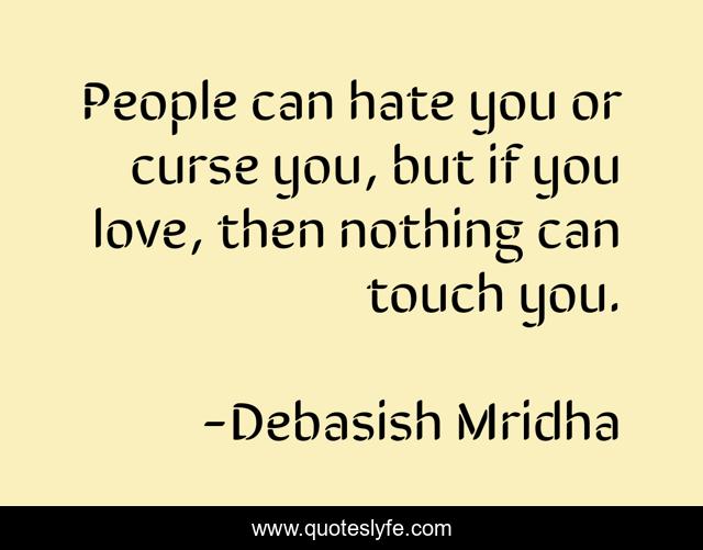 This page presents the quote "People can hate you or curse you, but if you love, then nothing can touch you.". Author of this quote is Debasish Mridha. This quote is about life, love, knowledge, inspirational, intelligence, philosophy, wisdom, quotes, affection,.