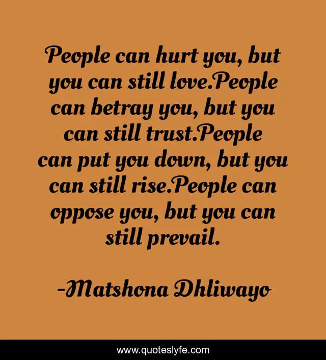 "Matshona Dhliwayo Quotes." Quoteslyfe.com, 2025. Fri. 05 Dec. 2025. <https://www.quoteslyfe.com/quote/People-can-hurt-you-but-you-can-208115>.