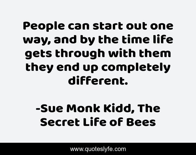 "Sue Monk Kidd, The Secret Life of Bees Quotes." Quoteslyfe.com, 2025. Sat. 06 Dec. 2025. <https://www.quoteslyfe.com/quote/People-can-start-out-one-way-and-51307>.