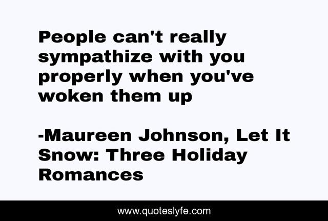 This page presents the quote "People can't really sympathize with you properly when you've woken them up". Author of this quote is Maureen Johnson, Let It Snow: Three Holiday Romances. This quote is about reality-of-life, humourous-situations, reality,.