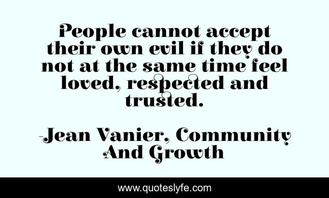 This page presents the quote "People cannot accept their own evil if they do not at the same time feel loved, respected and trusted.". Author of this quote is Jean Vanier, Community And Growth. .