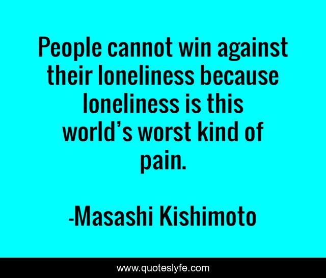 This page presents the quote "People cannot win against their loneliness because loneliness is this world’s worst kind of pain.". Author of this quote is Masashi Kishimoto. This quote is about naruto, loneliness, pain, people,.