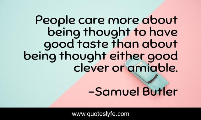 This page presents the quote "People care more about being thought to have good taste than about being thought either good clever or amiable.". Author of this quote is Samuel Butler. .