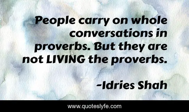 This page presents the quote "People carry on whole conversations in proverbs. But they are not LIVING the proverbs.". Author of this quote is Idries Shah. This quote is about sufism, sufis, psychology, wisdom,.