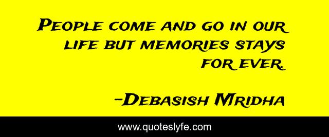 This page presents the quote "People come and go in our life but memories stays for ever.". Author of this quote is Debasish Mridha. This quote is about life, love, knowledge, people, inspirational, intelligence, philosophy, wisdom, affection,.