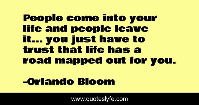 This page presents the quote "People come into your life and people leave it... you just have to trust that life has a road mapped out for you.". Author of this quote is Orlando Bloom. This quote is about life, road, people,.