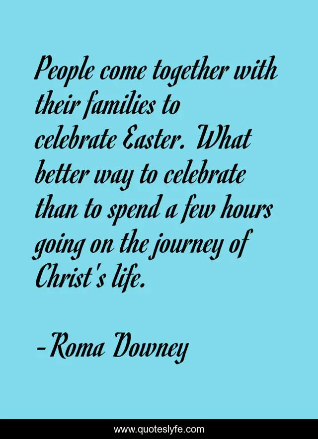 This page presents the quote "People come together with their families to celebrate Easter. What better way to celebrate than to spend a few hours going on the journey of Christ's life.". Author of this quote is Roma Downey. This quote is about life, journey, together,.