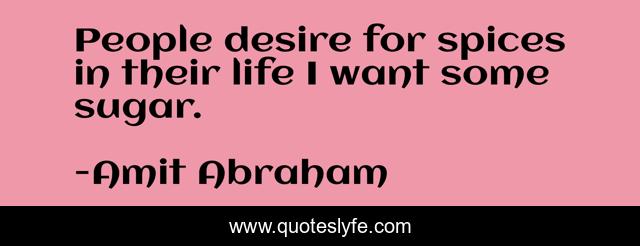 "Amit Abraham Quotes." Quoteslyfe.com, 2025. Sat. 06 Dec. 2025. <https://www.quoteslyfe.com/quote/People-desire-for-spices-in-their-life-125107>.