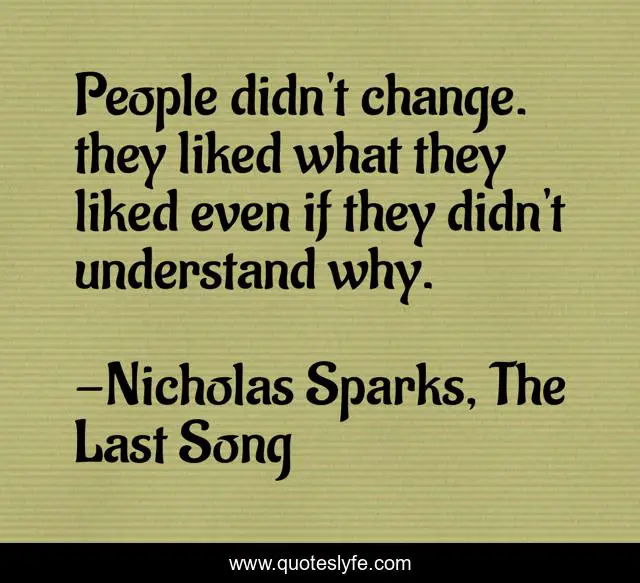 "Nicholas Sparks, The Last Song Quotes." Quoteslyfe.com, 2025. Sat. 06 Dec. 2025. <https://www.quoteslyfe.com/quote/People-didn-t-change-they-liked-what-51122>.