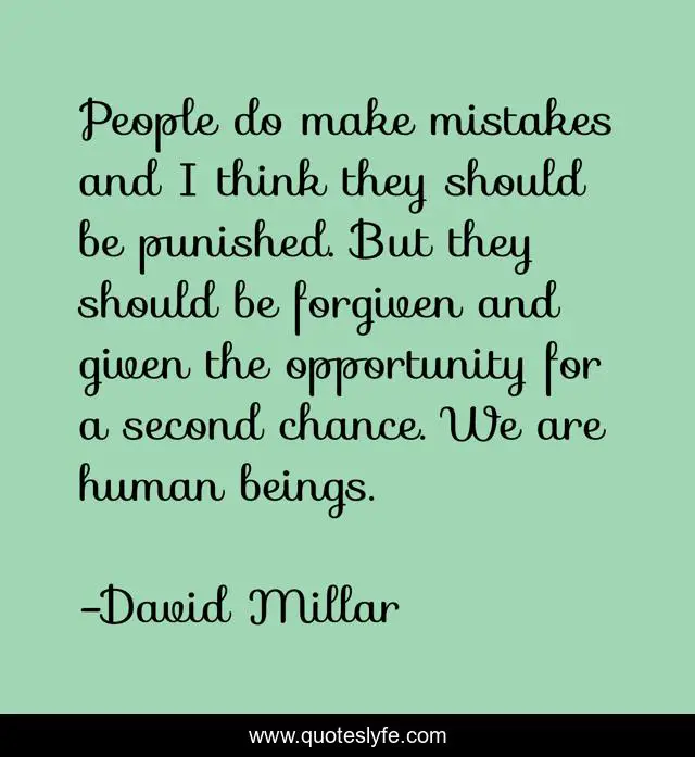 This page presents the quote "People do make mistakes and I think they should be punished. But they should be forgiven and given the opportunity for a second chance. We are human beings.". Author of this quote is David Millar. This quote is about mistakes, opportunity,.
