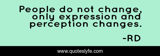 This page presents the quote "People do not change, only expression and perception changes.". Author of this quote is RD. This quote is about perception, expression, people,.