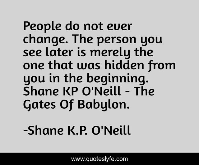 People do not ever change. The person you see later is merely the one that was hidden from you in the beginning. Shane KP O'Neill - The Gates Of Babylon.