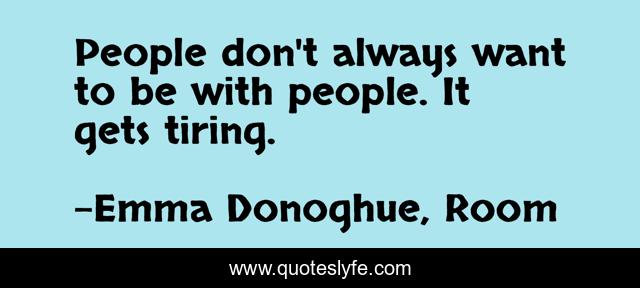 This page presents the quote "People don't always want to be with people. It gets tiring.". Author of this quote is Emma Donoghue, Room. This quote is about life, humans, human-contact, people,.