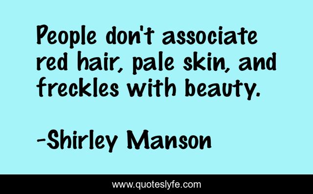 This page presents the quote "People don't associate red hair, pale skin, and freckles with beauty.". Author of this quote is Shirley Manson. This quote is about hair, red, people,.