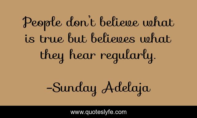 This page presents the quote "People don’t believe what is true but believes what they hear regularly.". Author of this quote is Sunday Adelaja. This quote is about hearing, belief, people,.