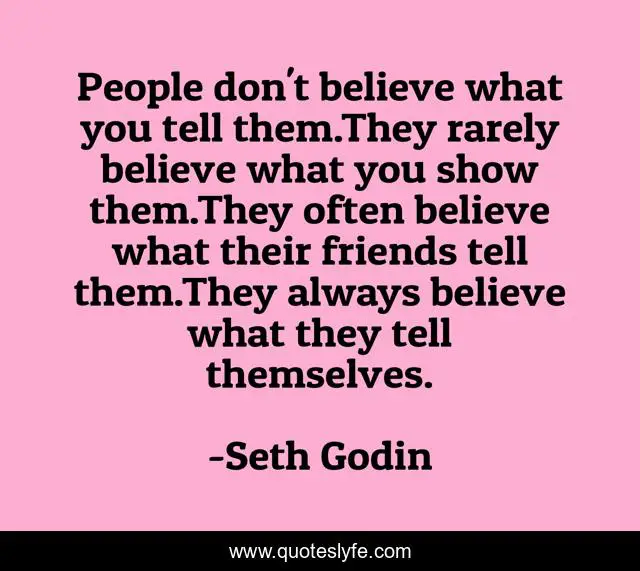 "Seth Godin Quotes." Quoteslyfe.com, 2025. Sat. 06 Dec. 2025. <https://www.quoteslyfe.com/quote/People-don-t-believe-what-you-tell-5179>.
