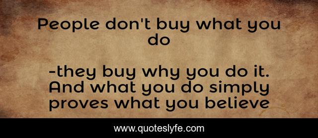 This page presents the quote "People don't buy what you do". Author of this quote is they buy why you do it. And what you do simply proves what you believe. This quote is about simon sinek, start with why: how great leaders inspire everyone to take action,.