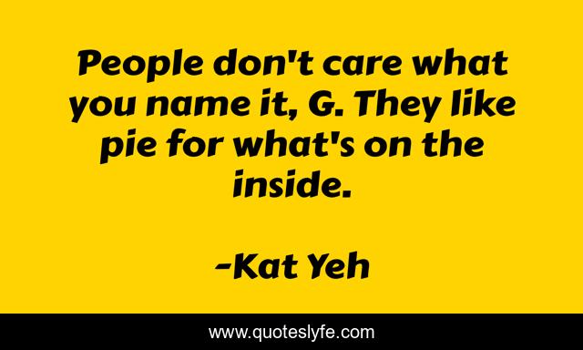 This page presents the quote "People don't care what you name it, G. They like pie for what's on the inside.". Author of this quote is Kat Yeh. .