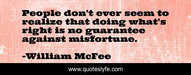 This page presents the quote "People don't ever seem to realize that doing what's right is no guarantee against misfortune.". Author of this quote is William McFee. .