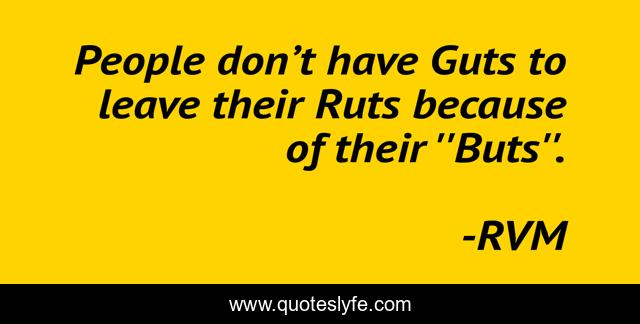 This page presents the quote "People don’t have Guts to leave their Ruts because of their ''Buts''.". Author of this quote is RVM. This quote is about motivation, inspiration,.