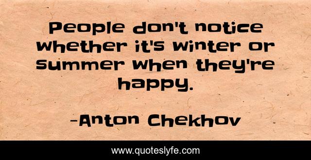 This page presents the quote "People don't notice whether it's winter or summer when they're happy.". Author of this quote is Anton Chekhov. This quote is about happy, winter, people,.