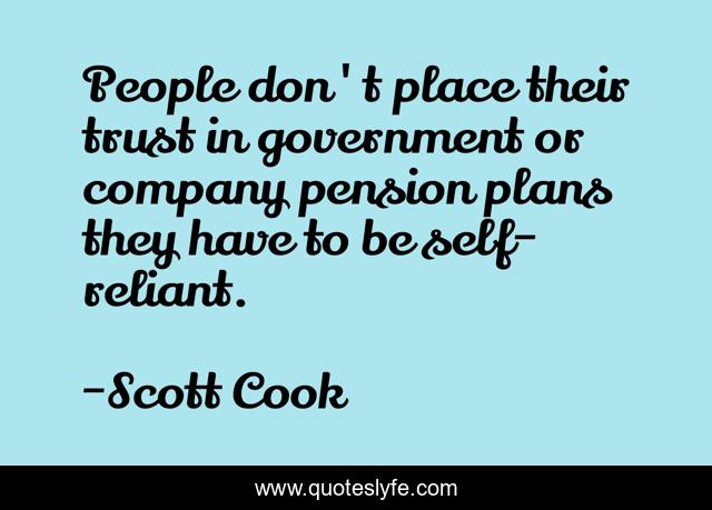 This page presents the quote "People don't place their trust in government or company pension plans they have to be self-reliant.". Author of this quote is Scott Cook. This quote is about company, government, people,.