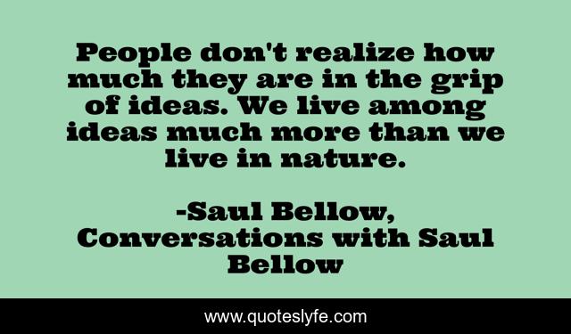 This page presents the quote "People don't realize how much they are in the grip of ideas. We live among ideas much more than we live in nature.". Author of this quote is Saul Bellow, Conversations with Saul Bellow. .