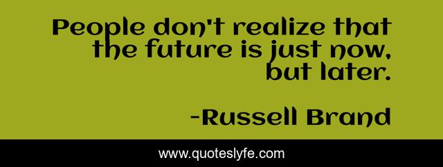 This page presents the quote "People don't realize that the future is just now, but later.". Author of this quote is Russell Brand. This quote is about past, future, russell-brand,.