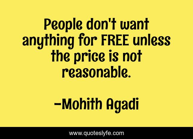 This page presents the quote "People don't want anything for FREE unless the price is not reasonable.". Author of this quote is Mohith Agadi. This quote is about life, people, quote, quotes, mohith-agadi, consumer, quotes-by-mohith,.