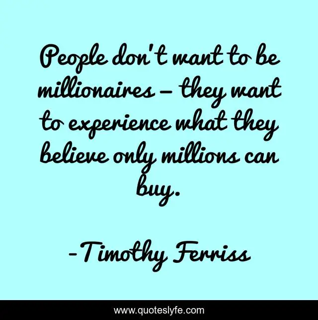 "Timothy Ferriss Quotes." Quoteslyfe.com, 2025. Sat. 06 Dec. 2025. <https://www.quoteslyfe.com/quote/People-don-t-want-to-be-millionaires-138456>.